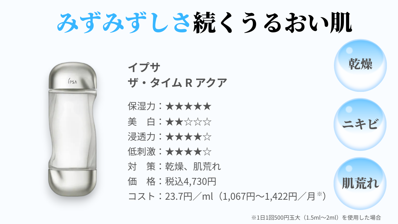 イプサ ザ・タイムR アクアの効果は?口コミ・成分・おすすめ肌質を解説