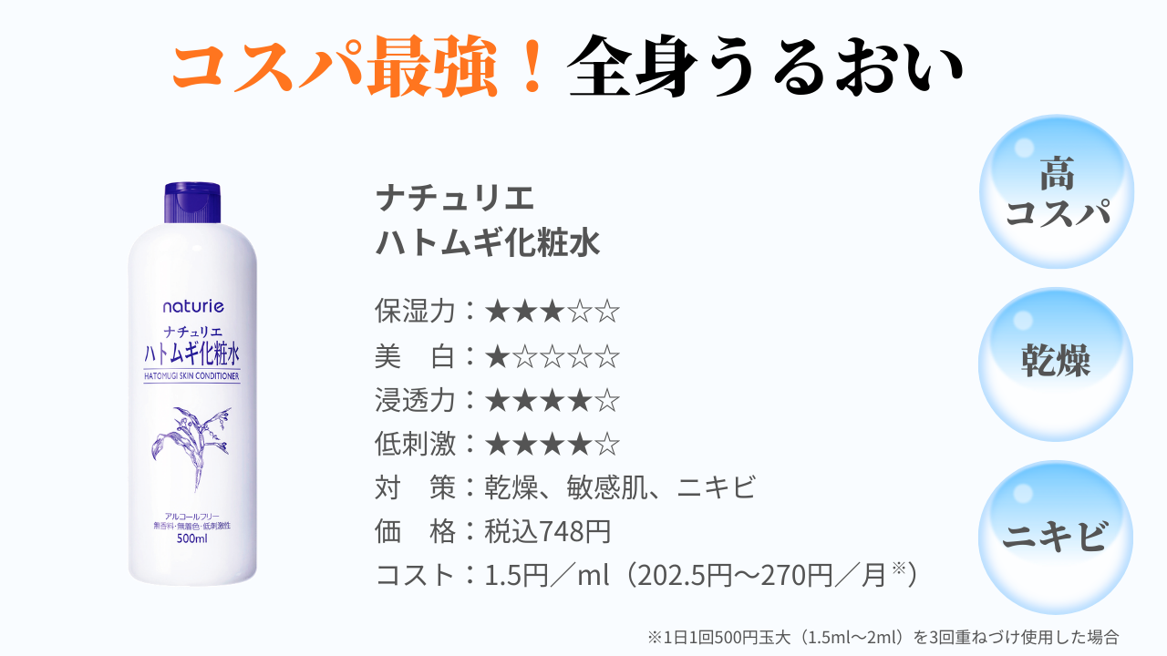 ナチュリエ ハトムギ化粧水は買うべき?口コミ・成分・おすすめな人を解説